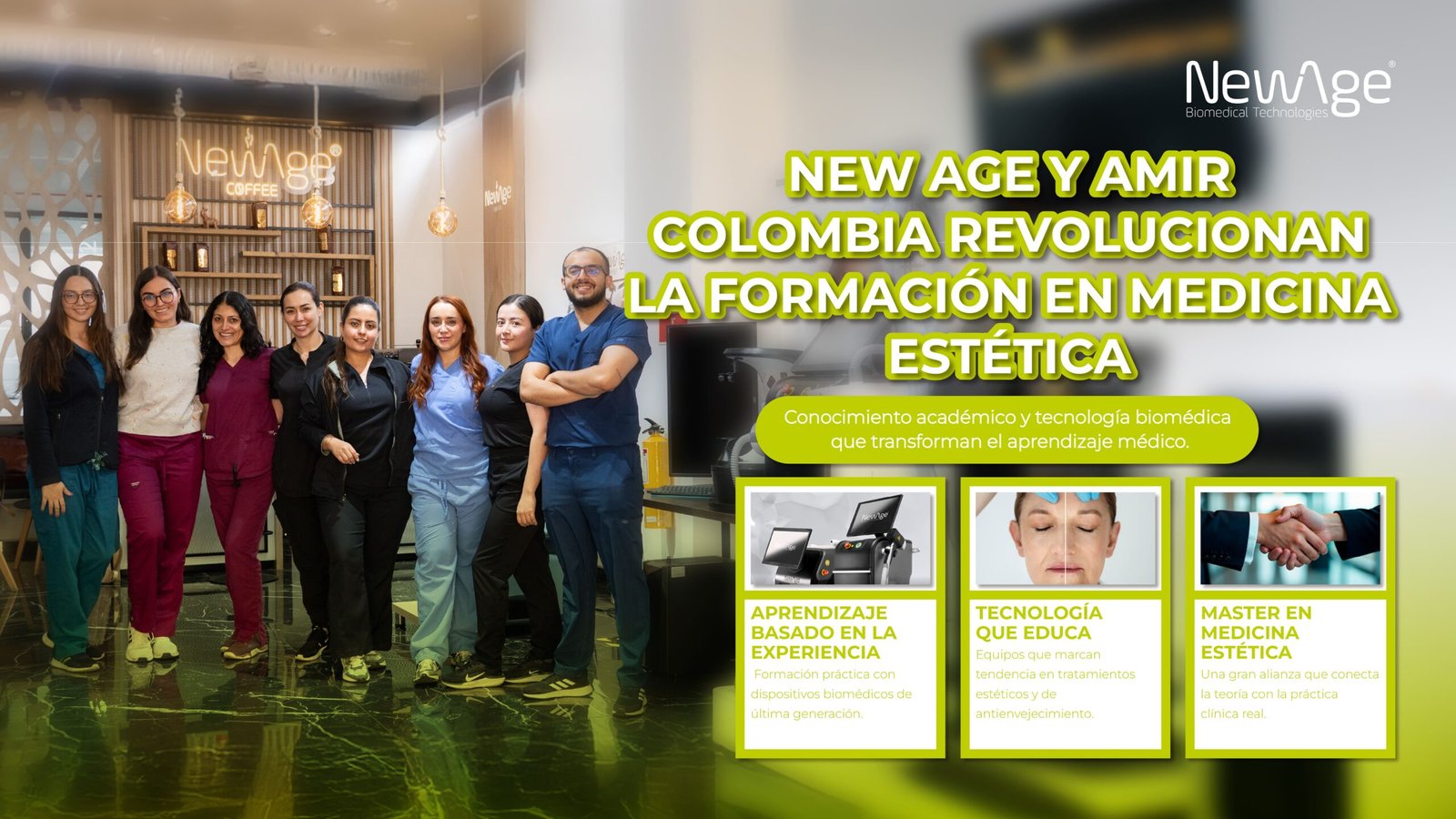 La alianza entre New Age y AMIR Colombia reafirma el compromiso de ambas instituciones con el crecimiento del sector médico-estético y la formación de profesionales altamente capacitados.